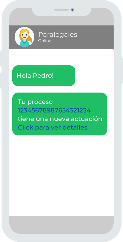 Te notificamos toda la información de tus procesos a tu número de WhatsApp.